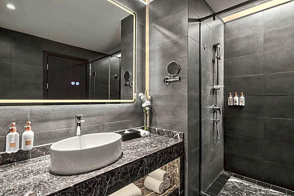 Room Premium is 377 square feet and includes either a king-size bed 150-183 width or 2 queen-size beds 150-154 width plus hairdryer, tea and coffee making facilities , safe, and bathrobes.